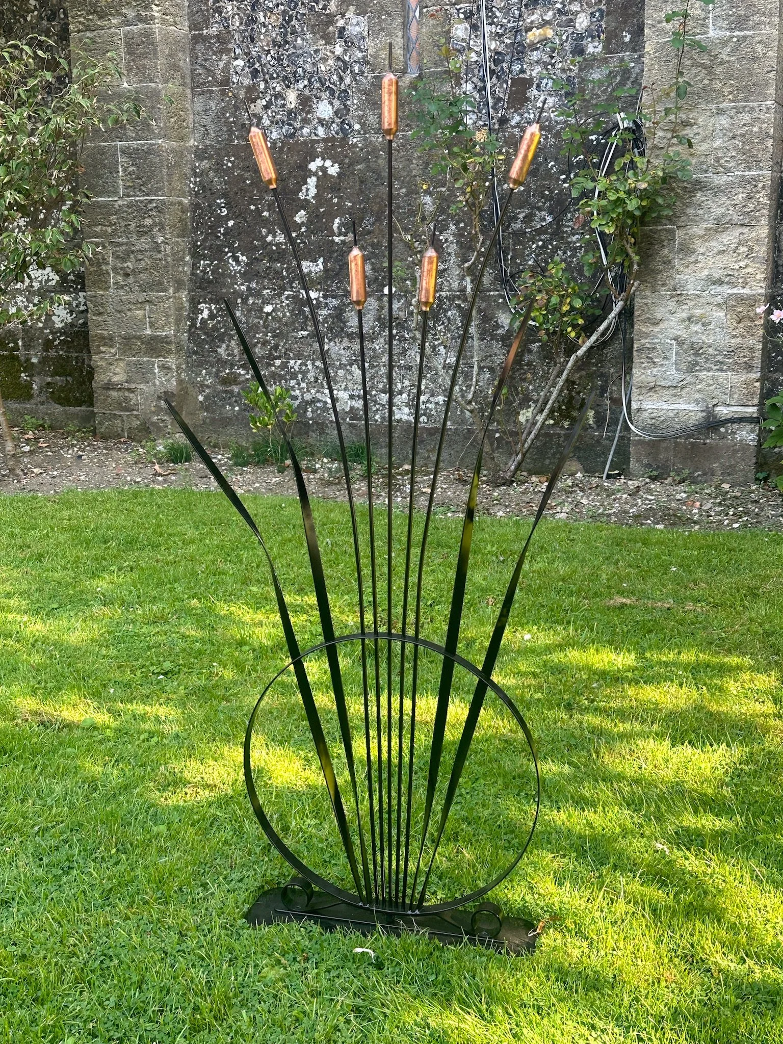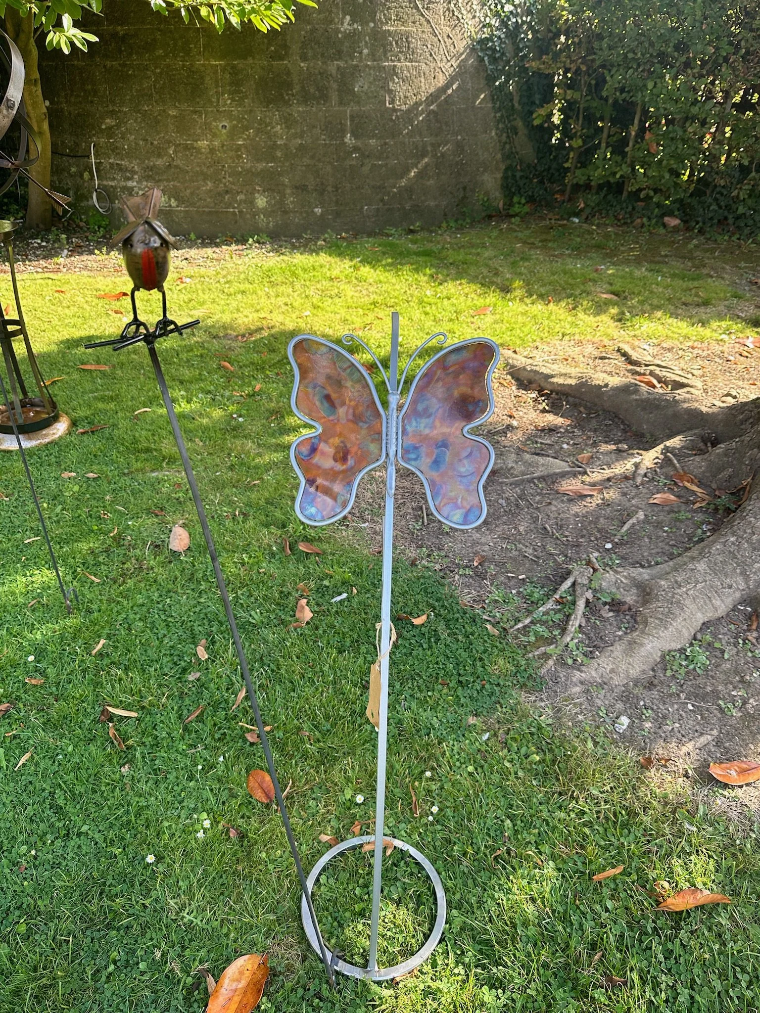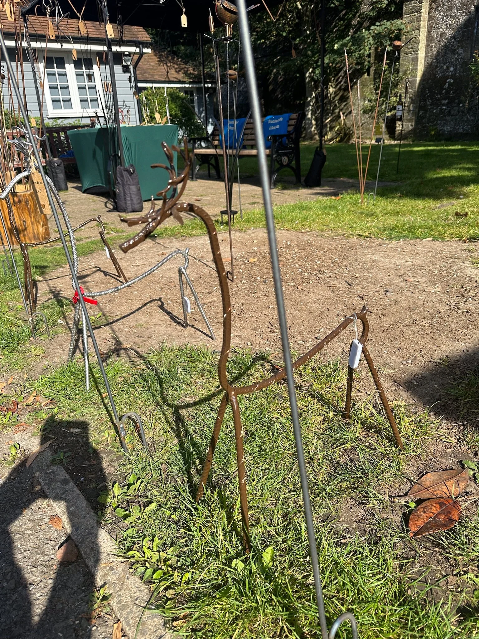 Handmade garden and home decor items made by re-purposing scrap metal.